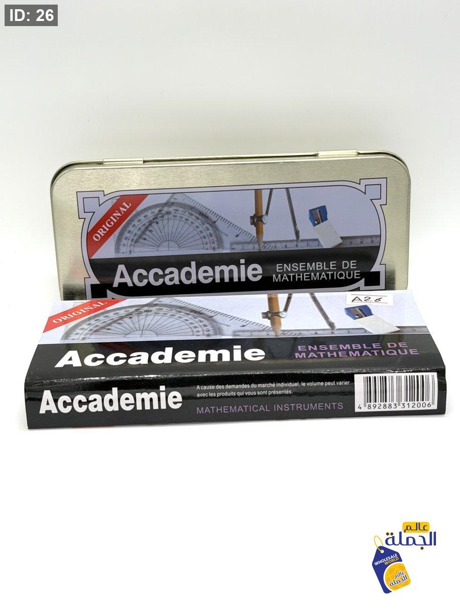 علبة هندسة academy متكاملة ومخصصة للطلاب لتساعدهم يرسمو الأشكال الهندسية بدقة عالية تحتوي على مسطرة منقلة فرجار مثلثات وغيرها وكلها بخامة قوية ومناسبة للاستعمال المدرسي اليومي