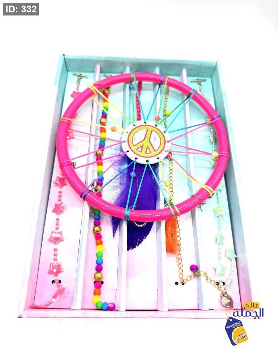 مصيدة أحلام مزينة بالخرز بالوان جميلة وتصميم انيق مثالية لتعليقها في غرف النوم او مقطعة ديكور مميزة