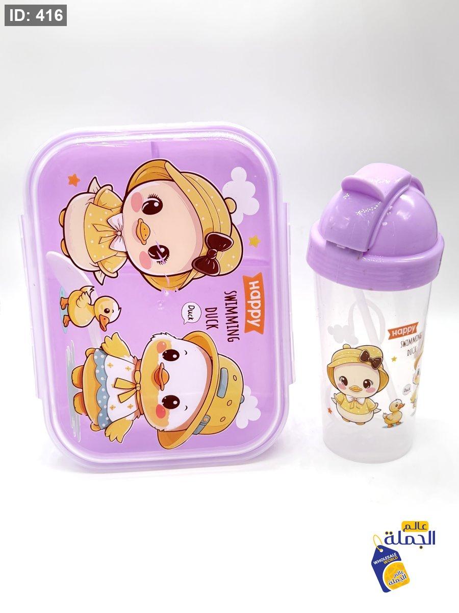 طقم عملي مكون من لانش بوكس ومطرة ماء مثالي للمدارس والرحلات والاستخدام اليومي