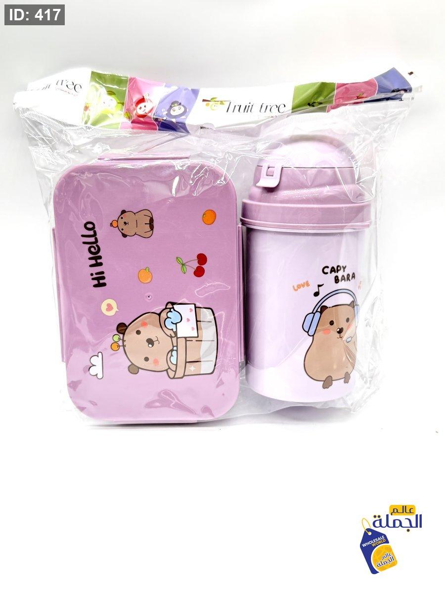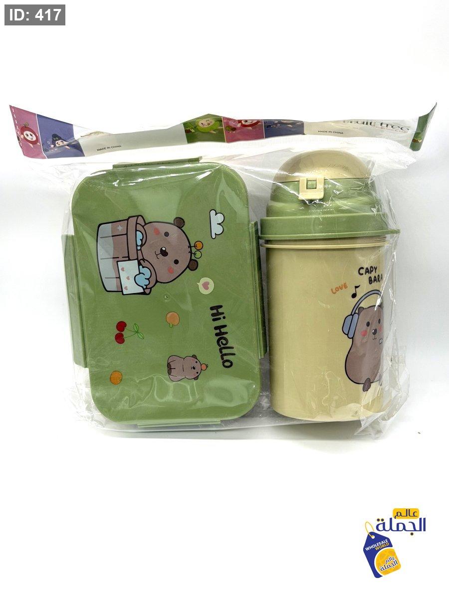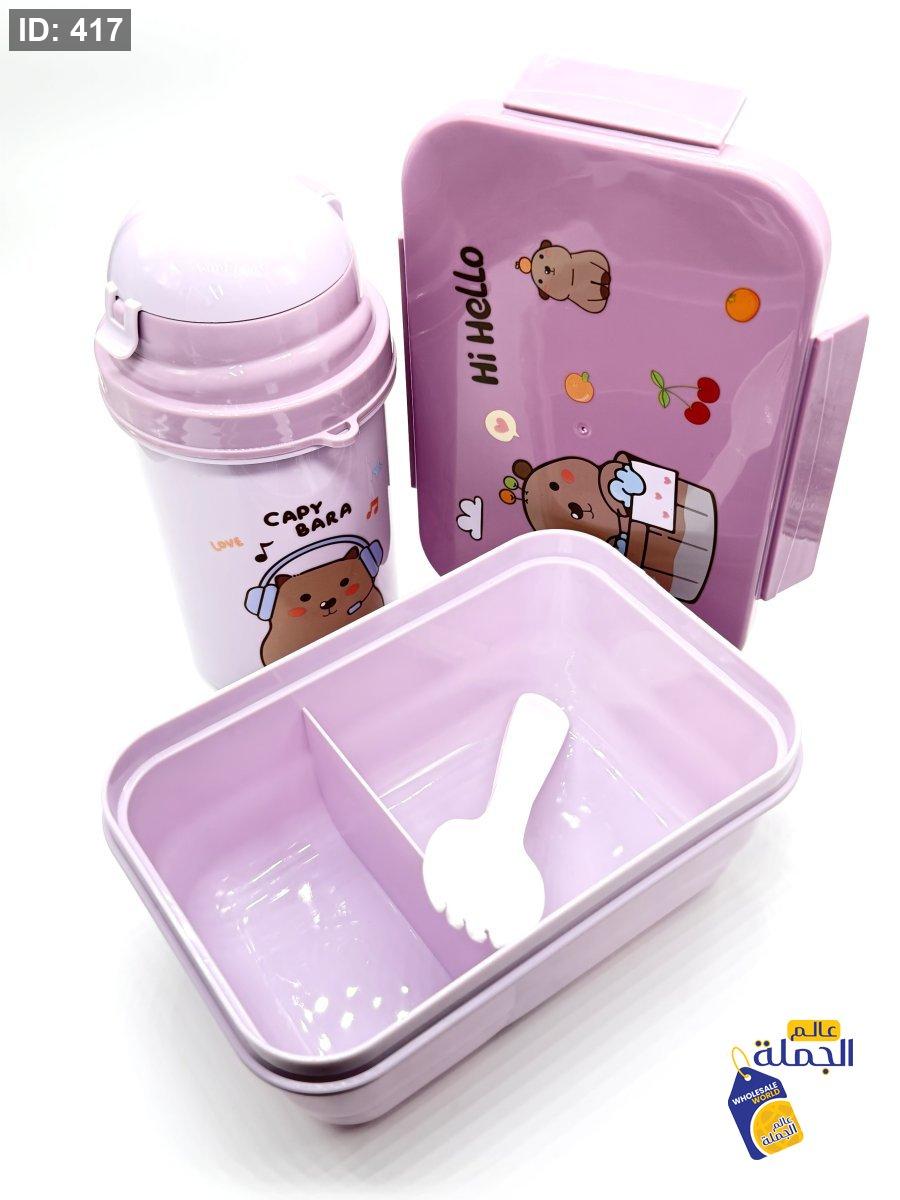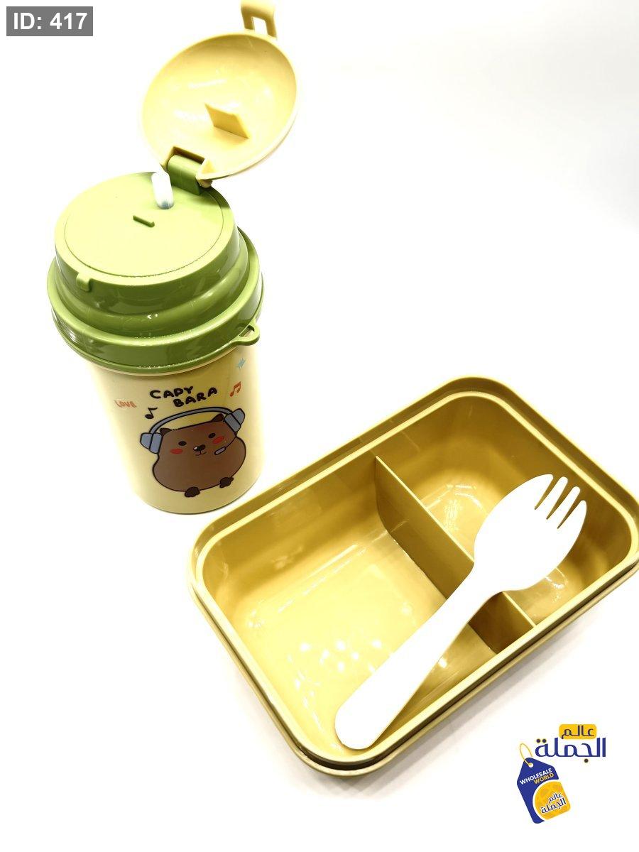 طقم لانش بوكس للطعام مريح وسهل الاغلاق مع مطرة ماء عمليك للاستخدام اليومي الطقم خفيف وسهل الحمل داخل الحقيبة